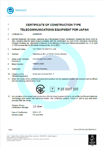 Main Page > OBD Trackers > FMM003 > FMM003 Certification & Approvals > FMM003 JATEThe Japan Approvals institute for Telecommunications Equipment: JATE was established and licensed to promptly provide technical conditions regulatory compliance certifications for telecommunications terminal equipment in March 1984. In April 1985, with the enforcement of the Telecommunications Business Law, JATE was designated as a Technical conditions certification body, and began its certification activities (April 8, 1985). Then, the scope of certification was expanded with the establishment of the technical requirements, specified by telecommunication carriers (April 10, 1985). Along with the amendment of the Telecommunications Business Act in January 2004, JATE have shifted to the registered certification body.