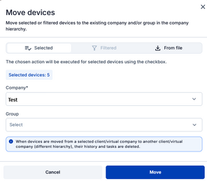 This functionality allows moving devices between companies.
