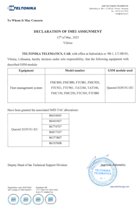 TAT240 Declaration of IMEI assignment