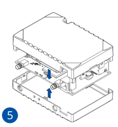 SIM card insertion/removal must be performed when device is powered off – external voltage and internal battery disconnected. Otherwise SIM card might be damaged or device will not detect it.