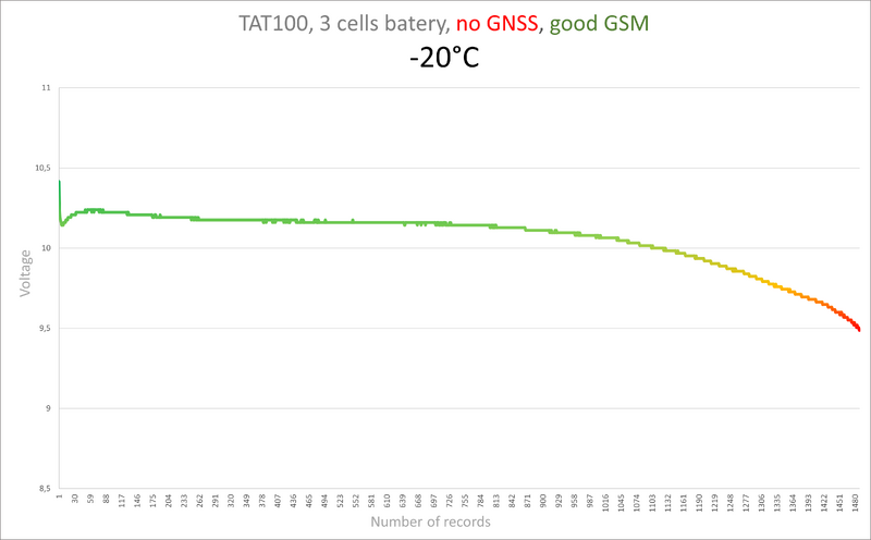 The charts below show how the TAT100 battery discharges in different environments. All provided information is based on real field tests.